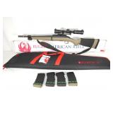 Serial # 9352597T. A reliable and popular rifle in Paratrooper carbine length. Features a 16-3/8" barrel, original style wood stock with field cleaning kit, wood handguard, rear sliding aperture notch sight, and hooded front iron sight. Comes equipped with GI style canvas sling, oiler, and cleaning kit. This rifle appears to be in like new condition in the original box.. 283