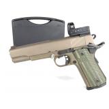 Serial #RHD007616. For the 1911 collectors who thought they had them all! This Limited Edition 1911 gives you the features you've come to love about a 1911 with an 18+1 rounds capacity! Features a black frame finish, black slide and checkered G10 camo grips, skeletonized trigger, rear adjustable notch sight and fiber optic front sight. Includes a DBTAC camo range bag, the original box, (10) 18 round magazines, cable lock and paperwork. Appears to be in excellent condition! 274