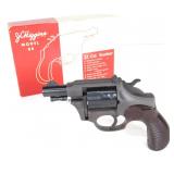 Serial #E235434. The ultimate in concealability! This powerful little mini revolver features a stainless steel finish, 1-1/8" barrel, 5 shot cylinder, spur trigger, rosewood grips, notch and half moon sights. Innovative rear notched cylinder makes loaded visibility a breeze! This lmini comes in the original foam lined case with manual and Uncle Mikes holster. Appears to be in excellent condition! 272