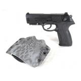 Serial #PX9391S. Ideal carry for personal defense, single/double action pistol holds up to 17 rounds. This Italian Beretta features a 4" barrel, black finish, ambidextrous manual safety, reversible mag release, 3 dot sights and accessory rail for laser or light. This pistol appears to be in great condition! Includes a Kryptek kydex holster. 275