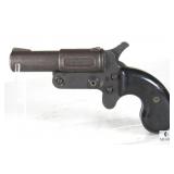 Serial # 61574. Novelty and highly collectible pepperbox derringer! This derringer is a close copy of the old Mossberg Brownie featuring 4 barrels. The firing pin actually rotates between the four barrels with each press of the trigger and shoots one round at a time. Chambered for 22 short, long or LR! Rear notch and half moon sights, ivory color synthetic grips, and chrome plated finish. Does show some rust spots and wear but otherwise appears to be in good condition. (C&R accepted) 6