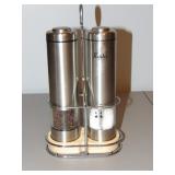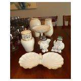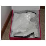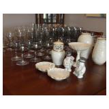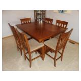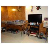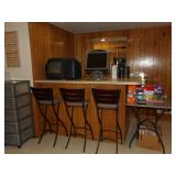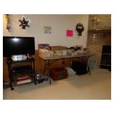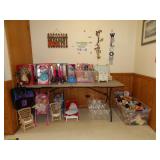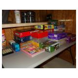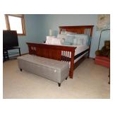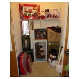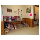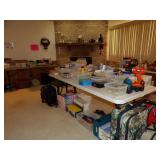 FURNITURE + HOME DECOR Reclining loveseat, Mission style counter height table and chairs, display cabinet, wine rack, oak dinette breakfast nook, Mission style queen size bed with matching nightstands, tall dresser and dresser with mirror. Jewelry cabinet, platform bed, end tables, chairs, recliner, wall art, vases, candles, knick-knacks, lamps, Dimplex fireplace with cabinet, sterling candlestick holders, and more. KITCHEN: Rachael Ray pots and pans, Keurig coffee maker, canister sets, InstaPot, bakeware, small appliances, Pfaltzgraff Flora Gold dinnerware, drinkware, Nambe flatware, and more. CLOTHING AND JEWELRY: Lady's costume jewelry. GENERAL: Cleaning products, linen, towels, general tools, Barbie doll collection, Beanie Babies, DVDs, CDs, vinyl records, Hummels, Precious Moments, Lenox, Bing and Grondahl, rugs, VHS tapes, electronics, holiday decor, books, Sole elliptical E25, Touch Master and Megatouch Ion 2007 bar video games and more.