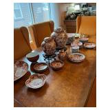 Imari China Dining table with orange chairs Vintage canisters Porcelain figurines Leather couch Egyptian art Hutch Beds Electronics Vintage lamps Desk Vintage turn table console Pots and pans Glassware Clothing Vintage drop leaf table Trunks Albums vintage Christmas Tools lawn mowers Seed spreader And so much more! |