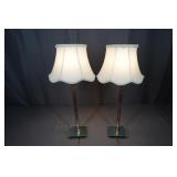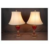 Pair of Ruby Etched Lamps - Circa 1940s / 1950s. 27in Tall