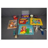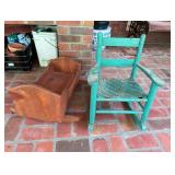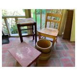 Wooden Stool, Small Chair, Footstool, and Bucket (Missing Bottom)