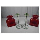 Pair Of Ruby Etched Lamps - Circa 1940S / 1950S