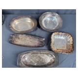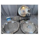 Silver Plated Platters, Salt and Pepper, Tongs, Coffee Pot and More