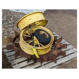 1000 DETAILS 1 Neon John Deere Quality Farm Equipment sign. Works. Measures about 20" x 16". Nice sign. 2 Old wrought iron jail cell door would look great on your gun room or wine cellar. Measures 35-1/2" wide x 89" tall. Brass Yale lock set and handle are mounted on two steel plates, one of which needs straightening. 3 Engine puller / cherry picker tilt mechanism is about 17" wide. Once you use one of these, you'll wish you always had it. 4 Antique bank vault day door looks like it is similar to the other in lot 6. Measures just under 70-1/2" tall and 30" over hinge rod. Has a Yale lock and intricate pattern bordering panel. Very heavy, bring help to pick it up. Would look awesome as your gun vault door or wine cellar. 5 Antique wrought iron bank vault day door is 33-3/4" wide x 70" tall excluding bottom hinge pin. Very cool and will look great on your wine cellar or gun room entrance. 6 Antique bank vault day door looks like it is similar to the other in lot 4. Measures 70" tall and 29" over hinge post hardware. Has a Yale lock and intricate pattern bordering panel. Very heavy, bring help to pick it up. Would look awesome as your gun vault door or wine cellar. 7 Three wheel dollies for your Polaris Slingshot or Honda three wheeler. Have 3-1/2" steel swiveling casters. Measure about 24" x 15". 8 Tombstone Pizza / Jacks Pizza No. N-100 pizza oven is about 18" x 15". Heats. 9 Serial No. tags for Model A tractors, Fox River Tractor Co. hay cutter and pick-up cutter tag, John Deere pieces, caution tags, 10" Mepps Giant Killer fishing lure, more mounted on a 12-1/2" x 17-1/2" board. 10 Industrial duty swiveling bench vise with 6-1/4" jaws. Moves smoothly, nice vise. Jaws look pretty good. 11 Unopened box of Blackstone mig welding wire is size .045" / 1.14mm. Stock No. 0856926. Weight: 33 lbs, Heat : 1735073. 12 Industrial construction welding table has 5" swiveling casters. Nice table measures about 10' x 3' x 3-1/2' high. 13 Bauer heavy construction double side step ladder is about 45" tall when set up. Small crack noted on top plastic but sturdy and in good shape. 14 Portable Lincoln welder rig to tig weld, wire weld, and stick weld. Includes Lincoln Invertec V300-Pro constant voltage and constant current welding power source; Lincoln DC Tig starter with foot pedal and regulator; Lincoln LN-10 Mig wire feed unit; argon cylinder with contents; carbon dioxide cylinder with contents; helium-argon-carbon dioxide blend cylinder with contents; helmet, gloves, beanie, chipping hammers; tungsten tig electrodes; nozzle gel; 10 lb roll of Avesta ER308SI stainless steel welding wire; Radnor ER308 stainless steel tig filler rods; extra mig nozzles, tips & other components; extra tig cup and handle; extra mig rollers and spacer; heavy duty cart; more. Seller says all gas cylinders are owned, not leased. Everything appears in very good condition. 125 1955 Chevy 3600 pickup truck has 6 cylinder engine. Low miles of 28,542. Runs well. Interior is in good condition with a well done classic seat cover, all the nobs and stitches are there, it has an aftermarket sound system by Super Tuner and Jensen speakers, and a classic blue and white interior, windows move well. Door steps have some rust through but door jams or rockers are very solid. Out back we have custom bed stacks, a new wooden bed, wheel wells show almost no rust, no cracks noted in any of the glass. Under the hood there is a K&N air filter and a newer looking fuel pump. The tires are good, especially on the back they have very nice tires. ID No. J255J025840. *** 1955 Chevy 3600 step-side pickup truck starts runs and drives well, come to open house to check it out. 15 Three partial containers of welding rods incl. 6011, 7018, and 6013. Largest are 1/8". 16 Vintage Bennett hand crank oil pump and reservoir was once used to fill glass oil bottles in a service station. Thoughtful design has a built in over-fill drain back bottle base and spring loaded return pipe for residual oil. Handle turns two revolutions to a stop, presumably metered. Dip stick shows 4 gallons of medium weight oil remain in tank. Please plan accordingly for transport. 17 Kidde dry fire extinguisher, gauge says full. 18 16 speed drill press has a 3/4 hp motor and a 5/8" capacity. Runs. About 64" tall overall. Base can be bolted to floor. Has a 14" adjustable height plate. Comes with an 8" vise piece. 19 Craftsman Commercial 1/2 hp bench grinder is mounted on a nice stand, about 43" tall overall. Runs. Base can be bolted to floor. 20 Pair of sturdy 53" sawhorses are about 32" high. 21 No shipping. Full carbon dioxide gas cylinder measures 26" with valve or 23" without. Refill seal is intact. 22 No shipping. Full carbon dioxide gas cylinder measures 26" with valve or 23" without. Refill seal is intact. 23 No shipping. Full carbon dioxide gas cylinder measures 26" with valve or 23" without. Refill seal is intact. 24 24" Green 6/36 sigh, metal No Smoking sign, hard hat sign, more. 126 1971 Chevy El Camino has 230 six cylinder engine and 3 speed manual tranny with floor shifter. Badges are custom, not what vehicle says, not SS. Original miles are 60,499. Very little rust, overall solid. Good condition. Comes with a Spectra Premium heater core. Inside appears to be mostly all stock and in pretty good condition with a couple cracks in the dash, and a couple tears in the head liner, all the windowes and floor vents move smoothly, no cracks or chips notes on the glass. Under the hood we've got a 230 straight six. This sweet car has classic sporty rims wrapped in Firestone Firerhawk tires that all have very good tread, The car shows hardly any rust, the frame still has paint and is very solid. 1 33801K181947. Air cleaner decal reads 230 CI. Emmission sticker says 250CI. 25 17" wide tractor seat is almost that John Deere green color. Would make a neat bar stool. 26 17" tractor seat would make a neat bar stool seat. 27 Pair of Dodge Intercooled Cummins Turbo Diesel panels are 28" x 5". Great