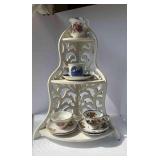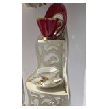 This fantastic sale includes jewelry, elegant décor items from Lefton, Fenton, Avon, and Homeco, clothing, Tiffany-style lamps, silver-plated items, teak outdoor furniture, furniture from Pulaski, Pier 1, Star, and Thomasville, lead crystal from Fostoria, Princess House, and Anchor, silk florals, Christmas items including vintage Atlantic Christmas tree, kitchen items, and more!