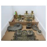 Antique Inkwells, Candle Holders and Collectibles