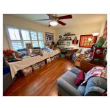 You don't want to miss this one! Beautiful 1968 Del Webb home is filled with vintage charm and treasures for everyone and every budget including a great collection of Pampered Chef, Genuine Fiesta Ware, a ton of kitchen essentials, small appliances, a dedicated quilting and sewing room, vintage green SINGER sewing machine, Christmas collection, vintage bedroom dresser, a great collection of popular movies on DVD, CDs, cassettes, Smart TVs, portable DVD player, printers, home electronics, vintage cameras, contemporary coffee table with matching end table and sofa table, convertible full-size sleeper sofa, curio cabinets filled with collectables, gorgeous fireplace/TV console with storage, dining table with inlaid wood, beautiful queen-size bedroom set with matching dresser and mirror, tall armoire, luggage, a garage filled with tools, electronic supplies, portable fans and heaters, paint, ladders, office supplies, backyard has gardening, patio sets, concrete bench, yard art, BBQ, original art and supplies, picture frames, aquarium equipment, men's 21 speed bike with accessories, a large laundry room with wash machine, more kitchenware, plasticware, small appliances, cleaning supplies and so much more! Located off McCall and Murrieta Road. Follow the signs to Gail's Estate Sale! |