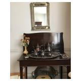 From major auction houses specializing in 40s and 50s items. A collection of early Wedgewood in many forms, and triton candle sticks. Colors tea pots, urns, plates and bowls. A Bronze and mahogany chippendale style dining room set including, a table with 3 boards and 6 chairs, a large side board and break front all carved. A walnut desk, a black and white round dinette set with 5 chairs. A contemporary walnut twin bedroom set with 2 twin beds, a blonde oak dresser and chest. A french style dresser, a wash finish wardrobe cabinet. Lots of silver plate flatware, lots of south west pottery, prints, lithographs, and paintings. A Jr. grand piano, vintage 45 records with jacket covers, and lots of kitchen items. A complete set of Dr. office furniture including, file cabinets, examining tables, medicine cabinets, an office desk, lots of waiting room chairs, and Dr. knick knacks. Plus so much more!