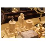 Frest Start Estate Sale is back in Fountain Hills this weekend! We're starting early on Thursday, and will be here for 3 days, as this sale is truly exquisite with so many pieces to sell, we want everyone to have opportunity to stop by! Starting with the most gorgeous Yamaha baby grand piano we'll have for sale here... Please know that all of the pianos we sell can be play tested and pre-sold if full price offer is made before the sale, unlike other items, in order to coordinate specific mover/pick up availability. The living room, where the piano is located has plenty of other beautiful items as well - such as two different original sculptures by J. Wyatt. We'll have some art for sale here too - original posters, signed prints, tons - and we mean tons of Waterford crystal glassware in different designs, as well as other crystal by Atlantis and Mikasa, and other companies, some heavy lead crystal decanters and bowls, among other items. Many decorative pieces are by Design Toscano, Z Galleries or Ethan Allen Home and are truly breath taking. We will also have a custom fabric sectional sofa for sale here, along with Ethan Allen vintage chairs, couple of brand new rugs, including a shaggy rug, bohemian 22k decorated glasses, a vintage bar cabinet, and vintage Ralph Lauren Polo glasses and retired Pier 1 and Z Gallery glasses as well. The kitchen is absolutely packed as well, and perhaps we should start with the breath-taking dining table, that is in immaculate condition, walnut, inlaid wood - with brand new Z Gallerie fabric studded benches on each side. The benches were covered since purchase, and they look as if they belong on the showroom floor in a furniture gallery. We also have a great condition, high quality iron baker's rack, plenty of Neiman Marcus plates, dishes, and sets, small kitchen appliances, electric portable fireplace, portable kitchen island on wheels, tons of heavy duty pots and pans, Keurig coffee maker, multiple flatware sets - mostly stainless steel by Wallace, Oneida and WB Rogers. There are tons of baking pans by Wilton and other companies, Soda stream maker with refills, solid wood tea box, among hundreds of other items, including plenty of decorative pieces too. The patio in this gorgeous property is probably one of the largest we have ever presented in Fountain Hills! We have two enormouse levels - a wrap around second floor patio with 3 different patio sets, multiple cast benches, outdoor indoor rugs, large planters, shelving, gardening supplies, new Aero Gardens, tons of Sunbrella cushions and pillows - and more! While the lower level presents a cabana, along with 4 other patio sets, including a wicker and metal set, in great condition, umbrellas, mutliple benches, chairs, plants and planters, metal art patio decor, concrete and cast statues, pedestals, grilling accessories, tools, auto-moto supplies, among other items. Please note that many of the furniture pieces in this household are in exquisite condition, of high quality, and made by companies such as Hooker Furniture, Michael Amini Jane Seymour Collection, Ethan Allen, Z Gallerie or Ladlow's (plus custom pieces of course). The master bedroom specifically will show the alluring dressers and chests of drawers in contemporary white and off white colors mostly, the vintage roll top desk, the corner desk/hutch, the custom walnut hampers, the Z Gallerie great condition bed with mirror headboard, while Guest bedroom downstairs presents two like new twin beds with leather-like headboards, along with chest of drawers, mirrors, acent chairs, and even a custom small dog-bed in brand new condition! The closets are the heart of this home... Brand new Ralph Lauren clothing with tags, and we're talking about designs from 1995 until now, but again, new with tags, are all here. We also have Christian Dior pantsuit, multiple vintage Tommy Hilfiger pieces, Tahari suits, Tahari jackets, tons of Free People Clothing brand new with tags, PM Richards evening wear, Joseph Aboud evening wear, Calvin Klein and Alfani, Bali wear, leather jackets, tweed and wool jackets by Ralph Lauren and others, brand new dress shirts, but it doesn't stop there. We will also present like new pair of Gucci women's loafers for sale in size 9.5, along with Gucci perfume, sunglasses, cosmetics. We also have Prada and Ray Ban sunglasses. Other brands will include Coach sneakers, Coach wallets, designer italian shoes, multiple Michael Kors, Coach, Brighton and Dooney and Burke handbags (some brand new!)... The amount of brand new cosmetics, as well as newer brasserie and robes items is overwhelming. We have plenty of bath and vanity decor here too, including trays, perfume bottles, body powders, anti-aging tools, along with other most classy accessories. This home has also a very interesting library of books, great courses, tons of cds, dvds, among other entertainment features. We will be selling Onkyo receiver, Yamaha stereo electronics, multiple universal remotes, Apple Tv consoles, in the same room that will show some great selection of vintage 90's posters and art. We have vintage bicycle and sport posters, including Andre Agassi vintage original poster. The adjoining sittiing room also has some Art Deco art for sale, along with more traditional decor and furniture selection with accent chairs, and brass lamps, along with marble top tables. The garage will hold a great selection of hand tools, but also some bigger tools as well, including Toro blower, Ryobi miter saw, vintage large vise, Craftsman tool chest in black, work bench, mutliple units of shelving, containers by Sterilite, refridgerator, small electronics, brand new boxes of furniture, such as portable kitchen island, desks, cabinets - new in boxes with directions on how to assemble them. There are some great light fixures for sale here as well, and of course tons of cleaning supplies, dog accessories, games, puzzles, ladders of all sizes, handicap equipment, including 5 new walkers, etc. T