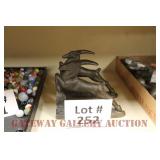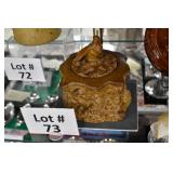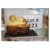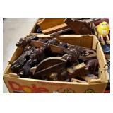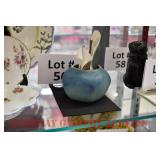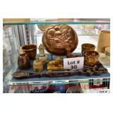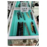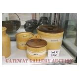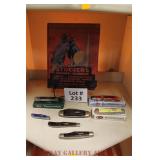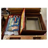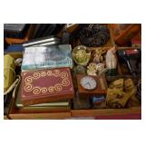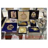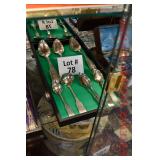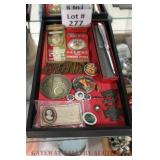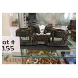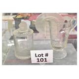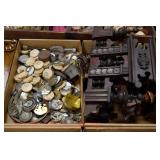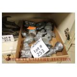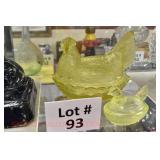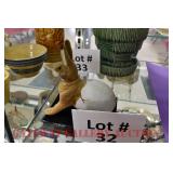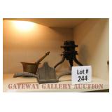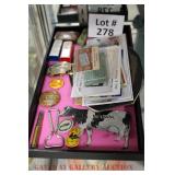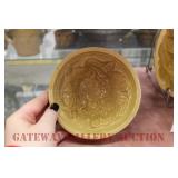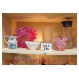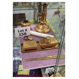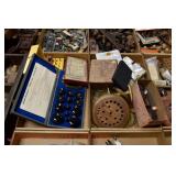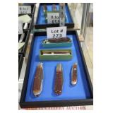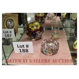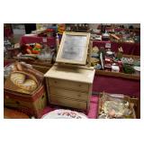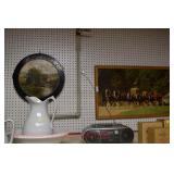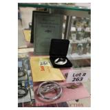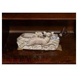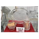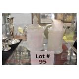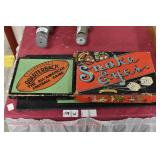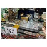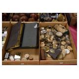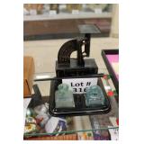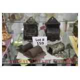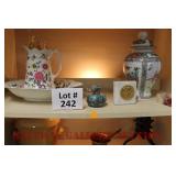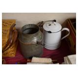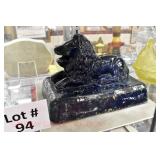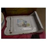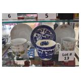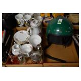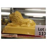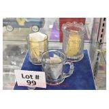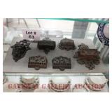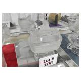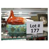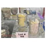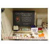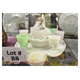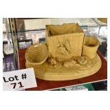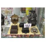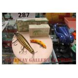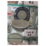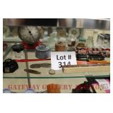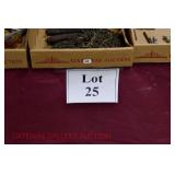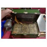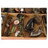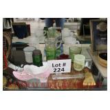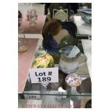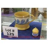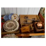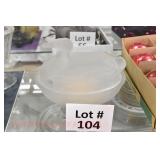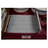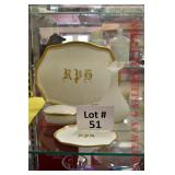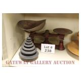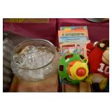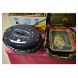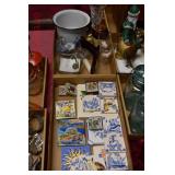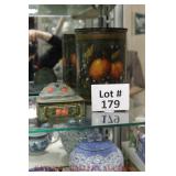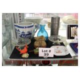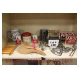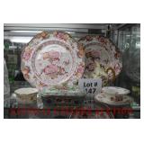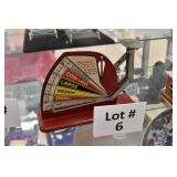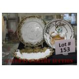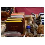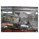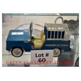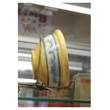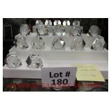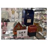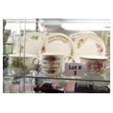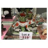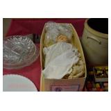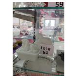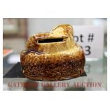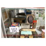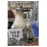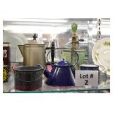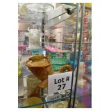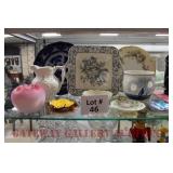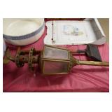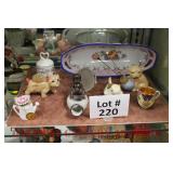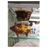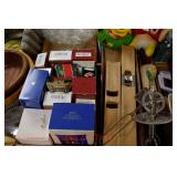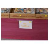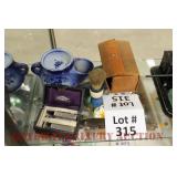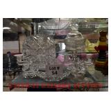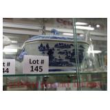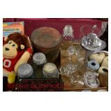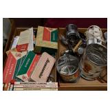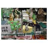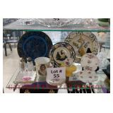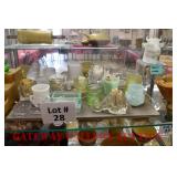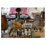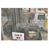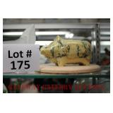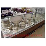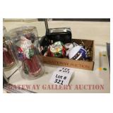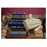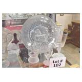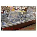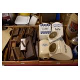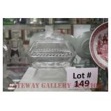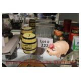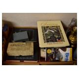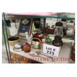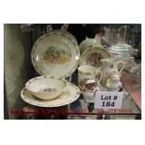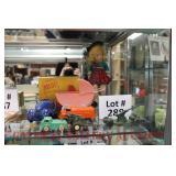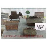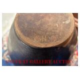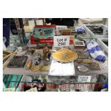 Showcase Catalog 1 (7) Advertising Tins: Cracker Jack; Mother's Joy Coffee; Grated Parmesan Cheese; Hershey's Coca; Hershey's Syrup; Luzianne; White Pepper 2 Vintage Kitchen: blue swirl enamel mug; cobalt enamel teapot; grey enamel pot w/swing handle; green depression measurer w/egg beater attachment; metal coffee pot 3 (3) Mush Cup/Saucer Sets: (1) Occupied Japan; (1) CCC; (1) other 4 Advertising Bottles: Shively's milk bottle quart; (2) Snow Bear banks; pig bank; store jar; Sta-Flo starch (w/orig. label) 5 Vintage Banks: J. Chein tin litho church bank; cast iron US post mailbox bank; tin litho school bank; US post mailbox bank 6 Egg Scale: Brower Mfg. Co, Jiffy Way (some minor age wear) 7 (2) Promo Cars: 1963 Ford Galaxie; 1962 Ford Futura 8 (7) Advertising Bottle Banks: (2) Lucky Joe; (1) Snow Bear; (1) Grapette; (1) Jumbo; (1) Fox U-Bet; (1) Space Admiral Galaxy 9 (3) Mush Cup/Saucer Sets: (1) is a mustache cup - all are un-marked 10 (5) Advertising Tins: ginger; Cumberland Club coffee; baking powder; peanut butter; lard 11 Child's Cups, Westmoreland & other China: Bavaria child's cup monkey pulling dog; (2) Tom Tom child's cups; (1) girl with dog child's cup; (1) gnome child's cup; Westmoreland basket hand painted; creamer; mustache cup & saucer set 12 (19) pcs. Occupied Japan: figurines; houses; dog; s&p set; ashtray 13 (3) Mush Cup/Saucer Sets: blue willow; mother; (1) other 14 1959 Metal Lunch Box: American Thermos, Central Fire Station Fire Marshall Rules w/orig. thermos 15 Vintage Children's Toys: Ohio Art tin litho drum bank; Western Germany Easter egg; push'um football player; toy rotary phone; Japan ceramic wedding party doll set; pair Japan ceramic African American dolls; oil lamp 16 Telechron Electric Clock: model 3H151, wood cased (some scratches to top of case) 17 Lladro Figurine: girl w/dog & telephone 18 (3) Lady Figurines: Royal Doulton Charlotte; Royal Doulton Coralie; Royal Worcester First Dance 19 Assorted Lot: Royal Doulton Choir Boy figurine; Royal Doulton Affection figurine; Henn Pottery snowman pie dish; stoneware vase (modern) 20 Service (12) Gem Ironstone China: blue transferware set includes (12) dinner plates, (12) lunch plates, (11) dessert plates, (6) cup/saucer sets, (6) extra saucers, creamer & covered sugar, (12) butter pats, gravy boat w/tray, large rectangular platter, small rectangular platter, covered square vegetable dish, (12) soup bowls, (1) waste bowl (as is), (12) berry bowls square, (2) rectangular covered dishes, (1) open serving dish (chips on some pieces, discoloration on some pieces, waste bowl as is) 21 (4) Advertising Tins: Nabisco saltine crackers; Maryland Biscuit Co saltine cracker; Sunshine Martini crackers; Purity pretzels 22 (12) Pattern Glass Goblets: pigs in corn; squirrel in bower; frog and spider; deer & doe with lily of the valley; ostrich looking at the moon; thrush & apple blossoms; flying stork; (2) stork (1 is frosted); deer & pine tree; flying birds; (1) other 23 (15) Amber Toothpick Holders: statue of liberty torch; elephant; frog; hand; rooster head; saddle; birds; wings; bear; wagon; hat; horse buggy; chick basket; tree stump; coal scuttle 24 Dresser Items & Frames: antique sterling ribbon threaders in orig. holder; lacquerware trinket box; brass wick trimmer candle snuffer scissors; metal dresser tray; brass tabletop mirror w/cherub face; (2) oval silhouettes; oval portrait framed 25 (13) pcs. Pattern Glass: (3) Wines - parrot, thrush & apple blossom, hummingbird; (10) Goblets - birds in swamp; flying birds; elk medallion; Egyptian; swimming swan; parrot; horse, cat, rabbit; flamingo; jumbo; deer & doe 26 (13) pcs. Blue Glass: boot wall match holder w/front strike; dark blue/purple master salt sandwich glass; buggy match holder w/strike (chip on wheel); wagon master salt (chip on wheel); Chinese shoe on toboggan toothpick holder; mother grimm toothpick holder; Deganhart elephant toothpick holder; rooster head shaker; snake on tree stump toothpick holder (roughness at top rim); monkey w/hat toothpick (chips on base); monkey toothpick holder (chips at rim); fish head toothpick holder (chips on rim); book match holder w/strike 27 (4) pcs. Glass: Deganhart owl figurine; dolphin mustard jar caramel slags; fighting roosters on nest; bulls head mustard jar w/spoon (chips on interior rim both head and base) 28 (15) Toothpick / Match Holders: elephant match holder (roughness at rim); cosmos toothpick (chipped at rim); wagon match holder; dog salt holder (roughness on rim); swan head toothpick holder; dog house toothpick holder; boot covered salt w/lid (roughness at interior rim); monkey Vaseline toothpick holder; jadeite basket toothpick; Vaseline bird on tree toothpick; donkey pulling wagon toothpick (chipped); rabbit toothpick; frosted elephant toothpick; just out chick toothpick (chipped) 29 (10) Mini. Chickens on Nest: all marked Vallerystahl - (3) green, (3) Vaseline, (2) pink, (2) milk glass 30 Assorted Kitchen: Welsh carved loving spoon; (3) Bennington custard cups; Peg Eby redware inkwell (modern 1970); bennington bird whistle; bennington lion figurine; yellowware pepper pot (chipped); small butter print; round copper mold 31 (8) pcs. Yellow-Ware: (2) steins; cup; toothpick (chipped); custard cup; soap dish; mini mixing bowl (chips); child's mug 32 Paper-Mache: rabbit coming out of egg, head is removable 33 McCoy Planter: green glazed 34 Character Pitchers: Royal Doulton Robinson Crusoe creamer; Ben Franklin bennington jug 35 (5) pcs. Silverplate: Reed & Barton creamer; Reed & Barton plate; double handled sugar (no lid); covered butter w/knife; toothpick 36 (6) pcs. Glassware: crystal bowl (signed); Heisey plate; crystal tri-foot center bowl; Stueben etched vase; etched center bowl; etched cranberry vase 37 Tea Set: Meriden quad plate includes teapot, covered sugar, creamer & open sugar 38 White House & Williamsburg Christmas Ornaments: 2003, 2005, 2017, 2020 - White House w/orig. box; (7) brass Williamsburg (5 have o