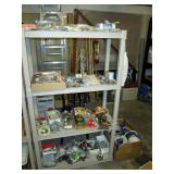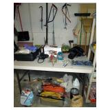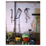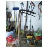 Garage: Yard Tools, brooms, vintage Scythes (3), tons of Sand dollars, Craftsman drill, Ridgid Belt Sander, Black & decker Skill Saw, Black & Decker battery drill, hand tools, gardening supplies, paint, swing gate (barriers) for kids and pets, pet supplies including carriers, Exercycle, glass telephone insulators, baskets and pots, newer Lawn mower, outdoor table and chairs, barbeques, wood, too much to list.