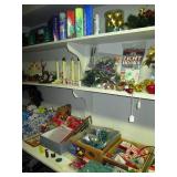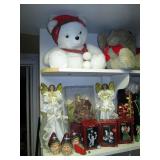 Holidays: Large collection of Snoopy Christmas and Mother’s Day collector plates, Snoopy bank, Lucy Waterford ornament, Royal Doulton Bunnykins plate, Easter decorations, large collection of annual Haviland porcelain ornaments, Christmas motion displays. Ornaments,, wrapping paper and ribbon, angels, Christmas teddy bears, lights, wreaths.
