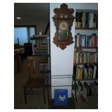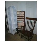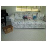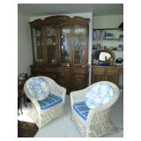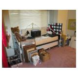 Furniture: 3 piece white wicker love seat and two chairs, Large china cabinet, Dining room table with 6 chairs, small server to match, Sofa, 2 matching mid-century chairs, end and occasional tables. Very nice Mission style Antique coat rack, lamps, Day Bed, Double Bed with King headboard, double mattress and boxsprings, credenza, Beautiful Antique cabinet, frosted glass and oak, Flat Screen TV, Samsung CD & VHS, Panasonic VHS, Wicker Sofa, Arm Chair and matching coffee table, entertainment centers, chairs, Gingerbread clock, Drop leaf table with 2 chairs, more.