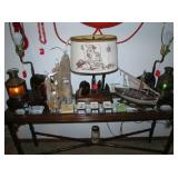 Nice Nautical collection including lamps, life ring, boats, knickknacks, brass boat tie down,.