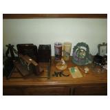 Special interest: Bookends – Gorham, Enesco musical, vintage Graphic Arts, Asian, bronze, more, Music Box Collection including a Wallace Silverplate Carousel mint in box, Silver Bulldog cane.