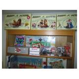 Viintage doll collection – Composition, hard plastic and vinyl – includes a Natgo Bonnie and Betsy musical in original box. Teddy bears, stuffed animals, Some vintage toys. Marbles, classic illustrated comics, Radio flyer small wagon, tricycle and wheelbarrow, boxed 1950’s dolls, Wood cube puzzles in box,