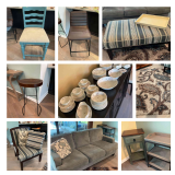 Small cleanout sale featuring lots of patio furniture and decor, Sleep Number queen bed, vintage Singer sewing machine, some bar and glassware, Haviland Limoges china set, Lenox china (incomplete), lots of console/casual tables, dining table, chairs, plants, planters and more. Cat-friendly house but no smells. EVERYTHING MUST GO!