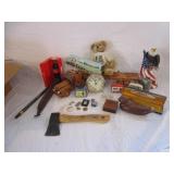 WHAT DO YOU HAVE TO SELL? THIS AUCTION INCLUDES A VARIETY OF TUBE RADIOS, SOME SIGNED & NUMBERED ARTWORK, MUSICAL INSTRUMENTS & SPEAKERS, GUITAR AMP, COLLECTIBLES, BAR ITEMS, GENERATORS, TOOLS, YU-GI-OH!, POKÉMON, & SPORTS CARDS, & MORE! AUCTION LOCATION: 0 AUCTION DETAILS - PLEASE READ! WHAT DO YOU HAVE TO SELL? THIS AUCTION INCLUDES A VARIETY OF TUBE RADIOS, SOME SIGNED & NUMBERED ARTWORK, MUSICAL INSTRUMENTS & SPEAKERS, GUITAR AMP, COLLECTIBLES, BAR ITEMS, GENERATORS, TOOLS, YU-GI-OH!, POKÉMON, & SPORTS CARDS, & MORE! AUCTION LOCATION: 0A LIST OF SHIPPING PRICES CLICK HERE & CHOOSE DOCUMENTS TO VIEW A PDF LIST OF SHIPPING PRICES FOR EACH LOT. 1 VINTAGE TUBE RADIO GENERAL MODEL# 324 BROADCAST RECEIVER POSSIBLY 1940'S? HAS SOME DAMAGE - NOT TESTED. FOR MORE INFO, CLICK HERE 2 PHILCO TUBE RADIO MODEL# 48-1262 BROADCAST RECEIVER. 1948/1949. HAS SOME DAMAGE AND NOT TESTED. FOR MORE INFO CLICK HERE 3 PHILCO TUBE RADIO MODEL# 38-40. POSSIBLY 1930'S. HAS SOME DAMAGE & NOT TESTED. FOR MORE INFO CLICK HERE 4 RCA VICTOR TUBE RADIO MODEL# U123. 1939. HAS SOME DAMAGE & NOT TESTED. FOR MORE INFO CLICK HERE 5 VINTAGE SUIT RACK SEAT HEIGHT 14" 6 STROMBERG-CARLSON TUBE RADIO MODEL# 1210. 1948. HAS SOME DAMAGE & NOT TESTED. FOR MORE INFO CLICK HERE 7 MAGNAVOX RECORD TABLE MODEL# 1P3346 RADIO/RECORD PLAYER HAS SOME DAMAGE & NOT TESTED. 36" X 19" X 26" 8 SONORA TUBE RADIO & SNOW WHITE 78'S ALBUM MODEL# RMR-219 BROADCAST RECEIVER 1946/1947. HAS BROKEN FRONT DOOR - NOT TESTED. FOR MORE INFO CLICK HERE 9 WESTINGHOUSE TABLE TOP RADIO MODEL# H860N7. 1960's? HAS POWER CORD. SELLER STATES IT WORKS. 10 ZENITH TABLE TOP RADIO WAVEMAGNET TRANS-OCEANIC WITH SOME DAMAGE. MODEL A600? NOT TESTED. 11 ZENITH TABLE TOP RADIO LONG DISTANCE RADIO MODEL# J665. SELLER STATES IT WORKS - SOME DAMAGE. 12 CALIFONE PORTABLE TURNTABLE MODEL# 1450K. STEREO COMPATIBLE - POWERS ON. 13 ADMIRAL? TABLE TOP RADIO MODEL# CBT-80WC? 17.5" X 10" X 9" IN FAIR CONDITION. NOT TESTED. 14 ARGUS 200 PORTABLE PROJECTOR 4" POWERS ON. 15 GOLD E MANUMATIC SLIDE PROJECTOR MODEL# 300-P-1042. 5" POWER ON. 16 MINUET TABLE TOP RADIO MODEL #UNKNOWN. 17" X 16" X 10". AM/FM/RECORD PLAYER. SOME DAMAGE. NOT TESTED BUT SELLER STATES IT WORKS. 17 AIRLINE TABLE TOP RADIO SHORTWAVE BROADCAST RADIO. MODEL UNKNOWN. 22" X 10" X 12" FAIR CONDITION. 18 HOMEMADE BLUETOOTH ANTENNA & SPEAKERS HOMEMADE TREASURE CHEST BLUETOOTH ANTENNA & SPEAKERS. CHEST IS 8" X 6". SPEAKERS ARE 10" X 13". CONNECT TO YOUR PHONE EASILY & INCLUDES REMOTE. TESTED & WORKING - SOUND GREAT! 19 MINI GRANDFATHER CLOCK & MORE CLOCK BY EINGRAHAM & CO. 14.5" X 20". HAS KEY & WORKS. ALSO BRASS QUEEN MARY BELL REPLICA & METAL DECORATIVE PLATES. FROM MINNEAPOLIS. 20 WESTMINSTER & WELBY CLOCKS WESTMINSTER MANTLE CLOCK USES D BATTERY (NOT TESTED) AND WELBY 8-DAY WALL CLOCK THAT INCLUDES KEY & WORKS. 20" WIDE & MOSTLY PLASTIC. 21 TROPHY KNIFE CASE & POCKET KNIVES KERSHAW, KAMP KING, SABRE, BLUE BIRD, BARLOW & MORE - SOME HAVE DAMAGE. 21A NEW BROWNING KNIFE SET NEW BROWNING MILITARY TRIPLE TRIBUTE 3-KNIFE SET WITH CASE. 22 SPEAKERS WIRELESS SOUNDBAR - BOX IS 23" LONG 2 ELECTRO BRAND UPRIGHT SPEAKERS 9.5" X 6"X 30.25" 8 OHM. STILL IN BOX! SMALL 6 OHM SUBWOOFER (3) 8 OHM SMALL SPEAKERS NOT TESTED. 23 2 VINTAGE LANTERNS NEW FEUERHAND BABY HURRICANE #275 AND DIETZ NO. 100 WITHOUT GLASS 24 SHIP DECOR WOOD SHIP WHEEL WITH STAINED/ETCHED GLASS. METAL/WOOD WHEEL WALL DECOR. BRASS PROPELLER - 9" - STAMPED "MICHIGAN" 25 2 CROSSCUT BOW SAWS 27" BLADES 26 VINTAGE PORCELAIN BUCKET & WOOD STATUES 10" TALL BUCKET & 16" TALL STATUES 27 OWL DECOR 6 COLLECTOR PLATES WITH WOOD FRAMES & CERAMIC FIGURINES, SOME HAVE BROKEN WING TIPS, ETC.. 28 HISPANIC & OTHER VINTAGE ITEMS SOFT CANTEEN, MEDICAL BAG, LIQUOR BOTTLE, PRIVILAGE BATTERY OPERATED MANTLE CLOCK, RAILROAD LANTERN & MORE 29 BRASS ITEMS & MORE 11.5" FLORENTIA WOOD PLATE, SPOONS FROM THAILAND, PORTUGUESE CANDLE HOLDERS, BRASS TEA KETTLES & MORE 30 AUF WIEDERSEHEN COO-COO CLOCK MADE IN GERMANY 7.5" X 5" X 9.5" WORKING CONDITION UNKNOWN 31 BRASS/COPPER DECOR & MORE CANDLE HOLDERS, BELL, DECORATIVE BOXES, SERVING TRAY, ALWE STEIN AND MORE 32 NOSTALGIA ELECTRICS POPCORN MAKER 9" X 9" X 19" MODEL# RKP-630 - POWERS ON. 33 METAL SIGNS & DOG FIGURE LARGEST SIGN IS 30" X 11" SEE PHOTOS. 34 VINTAGE ITEMS BLOW TORCH, NOVELTY MUSICAL PHONE DECANTER, HANDMADE POT, POTATO SIFTER & MORE. 35 METAL COOKWARE BRASS SPICE GRINDER, 12" PLATE, POTPOURRI DISH, TEA KETTLE & MORE 36 COPPER & BRASS DECOR & MORE LEATHER WRAPPED BOTTLE, MIDDLE EASTERN DALLAH, TEA KETTLE & WARMER, PITCHER AND MORE 38 WOODEN HANGING PICTURE & OLD PHOTOS 23" X 35" HAS EPOXY-LIKE TOP COAT. 39 FRAMED PAINTINGS 42"X 30" FRAMED PAINTING SIGNED ARDENNESS, SMALL BLACK & WHITE PAINTING AND FRAMED PRINT. 40 STERLING SILVER JEWELRY DOLPHIN BRACELET & SIGNED AK STERLING & 12K GOLD FILLED PARTIAL WATCH BAND 41 GUCCI BAG & MORE ALSO 3 MATCHING CLUTCHES, SMALLER CLUTCH AND HARLEY-DAVISON HATS 42 WATCH FOBS, MEDALS & COINS STERLING SILVER MEDAL, 2 RELIGIOUS MEDALS, MERCURY & EISENHOWER DIMES, 1930'S AMERICAN LEGION WATCH FOBS & MORE 43 LIGHTERS LOOK NEW, NO MARKINGS. SEE PHOTOS. 44 COLLECTIBLES SHARE A COKE, BIG BEN ALARM CLOCK (WORKS), CRIBBAGE BOARD, OLD LOCKETS & MORE 45 2 LANTERNS DIETZ NO.50 & NO.162 SUPREME 46 2 PAIRS OF LEATHER CHAPS NO SIZES. OVERALL LEGS MEASURE 37.5" & 40" 47 BAR SET GLASS DISH & LAMP SPINNING PUMP-DISPENSING DECANTER WITH SHOT GLASSES. 48 ROASTING PAN & SILVERPLATED SILVERWARE ROGERS BROS. SPOON SET, KNIVES, SPOONS & MORE 49 BAR LAMP WHISKEY BOTTLE LAMP WITH BAR UTENSILS. 50 BAR ITEMS VINTAGE PEANUT BOX WITH SCOOP? AND OVERSIZED CUTTYSARK WHISKEY BOTTLE ON WOOD STAND. 51 BRASS DECOR 25" MIRROR, VERICHRON CLOCK, CANDLE HOLDERS AND REINDEER & SLEIGH. 52 VINTAGE ITEMS & MORE MIGHTY D LIGHT FOLDING LED LIGHT, VACATION FUND COIN BANK, PENN #249 REEL (HAS CRACKS), BELT BUCKLE, HEADLIGHT ASSEMBLY FROM 1965 NEW YORKER & MORE 53 SONY SURROUND SOUND SPEAKERS LARGE SS-WS102 SUBWOOFER (4) SS-TS102 SPEAKERS SS-CT101 SPE