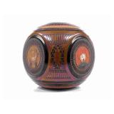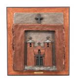 - 2646 ROGER & MARIE KULL "NATIVE AMERICAN POT" MIXED MEDIA TOOLED LEATHER & TURQUOISE WALL ART