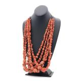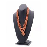 - 2035 VINTAGE NATIVE AMERICAN 3 STRAND CORAL PENDANT NECKLACE