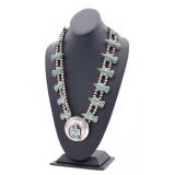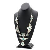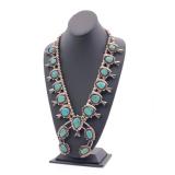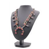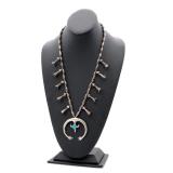- 2037 VINTAGE STERLING SILVER TURQUOISE SQUASH BLOSSOM NECKLACE