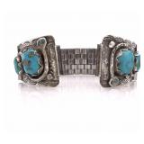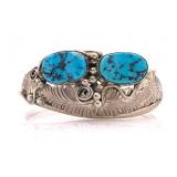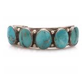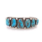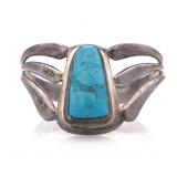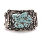 - 2002 EARLY NATIVE AMERICAN FRED HARVEY ERA STERLING SILVER TURQUOISE CUFF