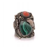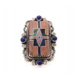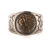 - 2051 MIKE SMITH STERLING GOLD PLATE INDIAN CHIEF RING