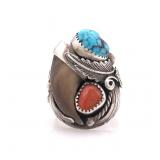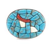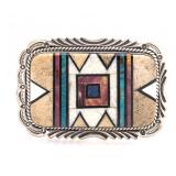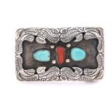 - 2054 SOUTHWESTERN STERLING SILVER TURQUOISE, IVORY, AND CORAL BELT BUCKLE