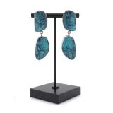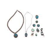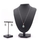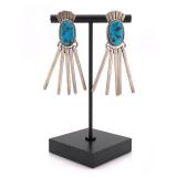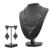 - 2055 VINTAGE 3PC NATIVE AMERICAN STERLING TURQUOISE PENDANT NECKLACE AND DROP DANGLE EARRINGS SUITE