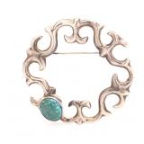 - 2033 VINTAGE SOUTHWESTERN STERLING SILVER TURQUOISE BROOCH