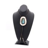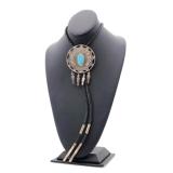 - 2059 VINTAGE SOUTHWESTERN STERLING SILVER TURQUOISE BOLO TIE