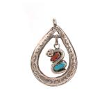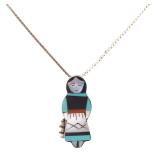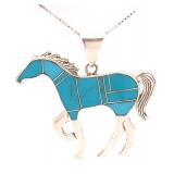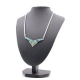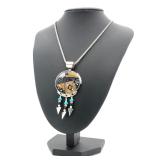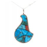 - 2553 CALVIN BEGAY NAVAJO STERLING SILVER INLAY PENDANT NECKLACE