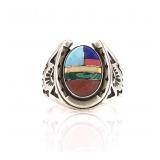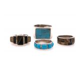 - 2548 LOT OF 4 GL MILLER SOUTHWESTERN STERLING SILVER INLAY RINGS