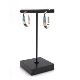 - 2587 LOT OF 3 PAIR OF GRACE SMITH NAVAJO STERLING SILVERTURQUOISE, MOTHER OF PEARL & JET EARRINGS