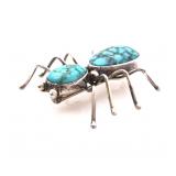 - 2637 SOUTHWESTERN STERLING SILVER TURQUOISE DOG HEAD BROOCH