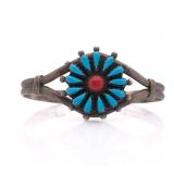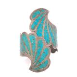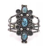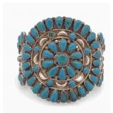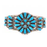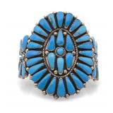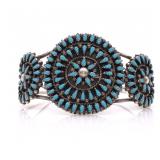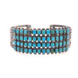 - 2567 NATIVE AMERICAN STERLING SILVER PETIT POINT TURQUOISE CUFF