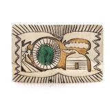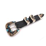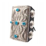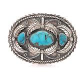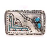 - 2635 R. SPENCER NAVAJO STERLING SILVER TURQUOISE BELT BUCKLE