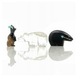 - 2595 SOUTHWESTERN 3 STRAND NICKEL SILVER ABALONE BIRD FETISH NECKLACE