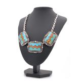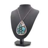 - 2554 SOUTHWESTERN NICKEL SILVER JASPER TURQUOISE PENDANT NECKLACE