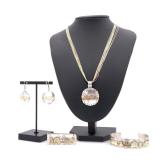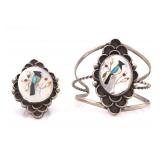 - 2556 4PC RICHARD BEGAY NAVAJO STERLING SILVER 12K GOLD FILLED TURQUOISE INLAY STORYTELLER JEWELRY SUITE