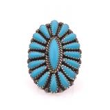 - 2058 BERNICE BONNEY NAVAJO STERLING SILVER TURQUOISE CLUSTER RING