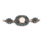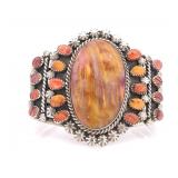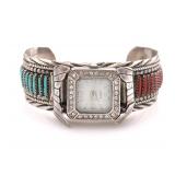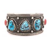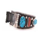 - 2057 FELIX JOE NAVAJO STERLING SILVER TURQUOISE & CORAL WATCH CUFF