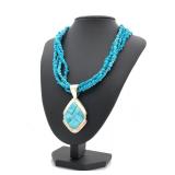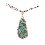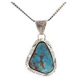 - 2560 MILTON LEE NAVAJO STERLING SILVER TURQUOISE CABOCHON PENDANT NECKLACE