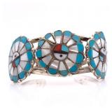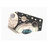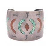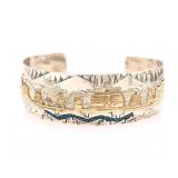 - 2593 RICHARD BEGAY NAVAJO STERLING SILVER 12K GOLD FILLED TURQUOISE INLAY STORYTELLER CUFF