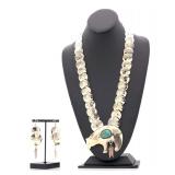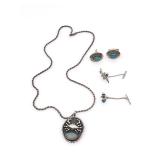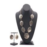 - 2584 ARMAND AMERICAN HORSE LAKOTA TRIBE NICKEL SILVER INLAY HUMMINGBIRD PENDANT NECKLACE & EARRINGS SUITE