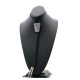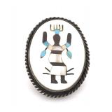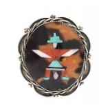 - 2030 VERA LUNA ZUNI STERLING APACHE GAHN DANCER INLAY BOLO TIE